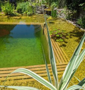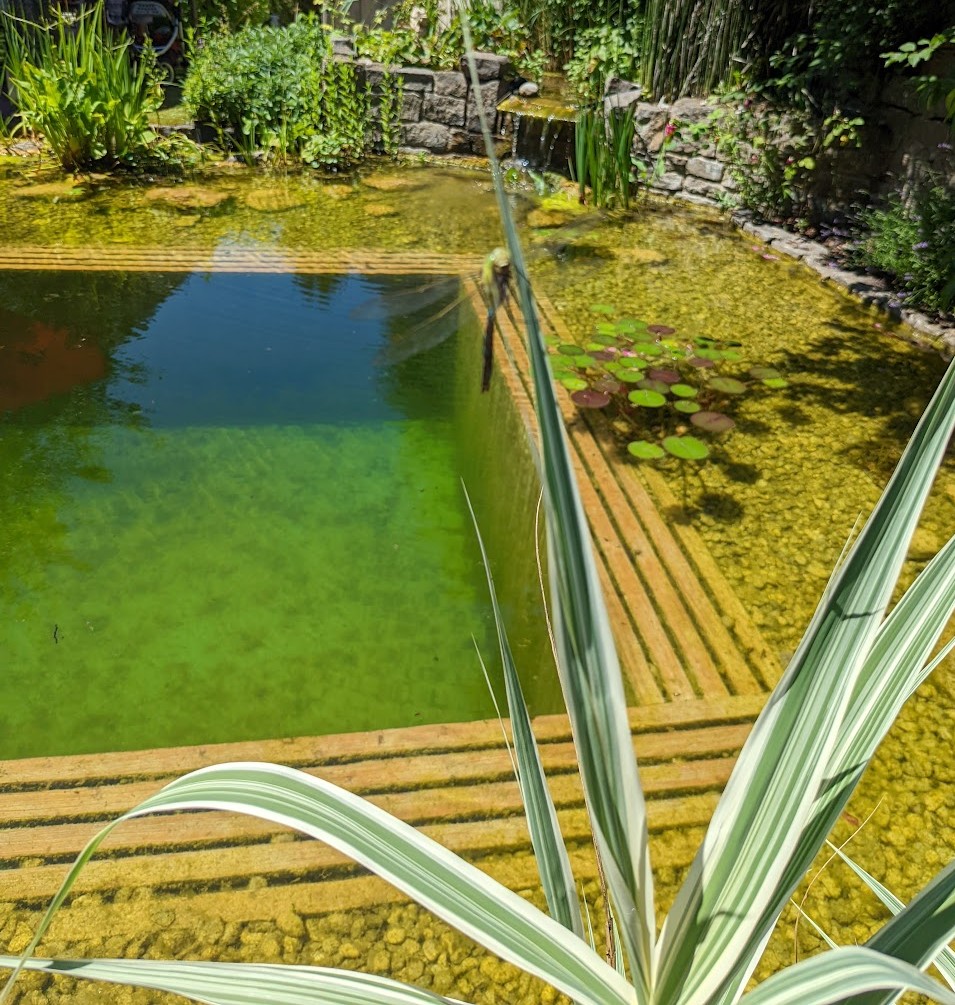 Ein Glück ist, dass unser Schwimmteich wenig Algenbildung aufweist – dies hängt aber immer von Wasserqualität, Nährstoffverfügbarkeit/-eintrag, (Wasser)Temperatur und Sonneneinstrahlung ab.