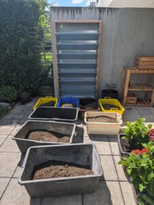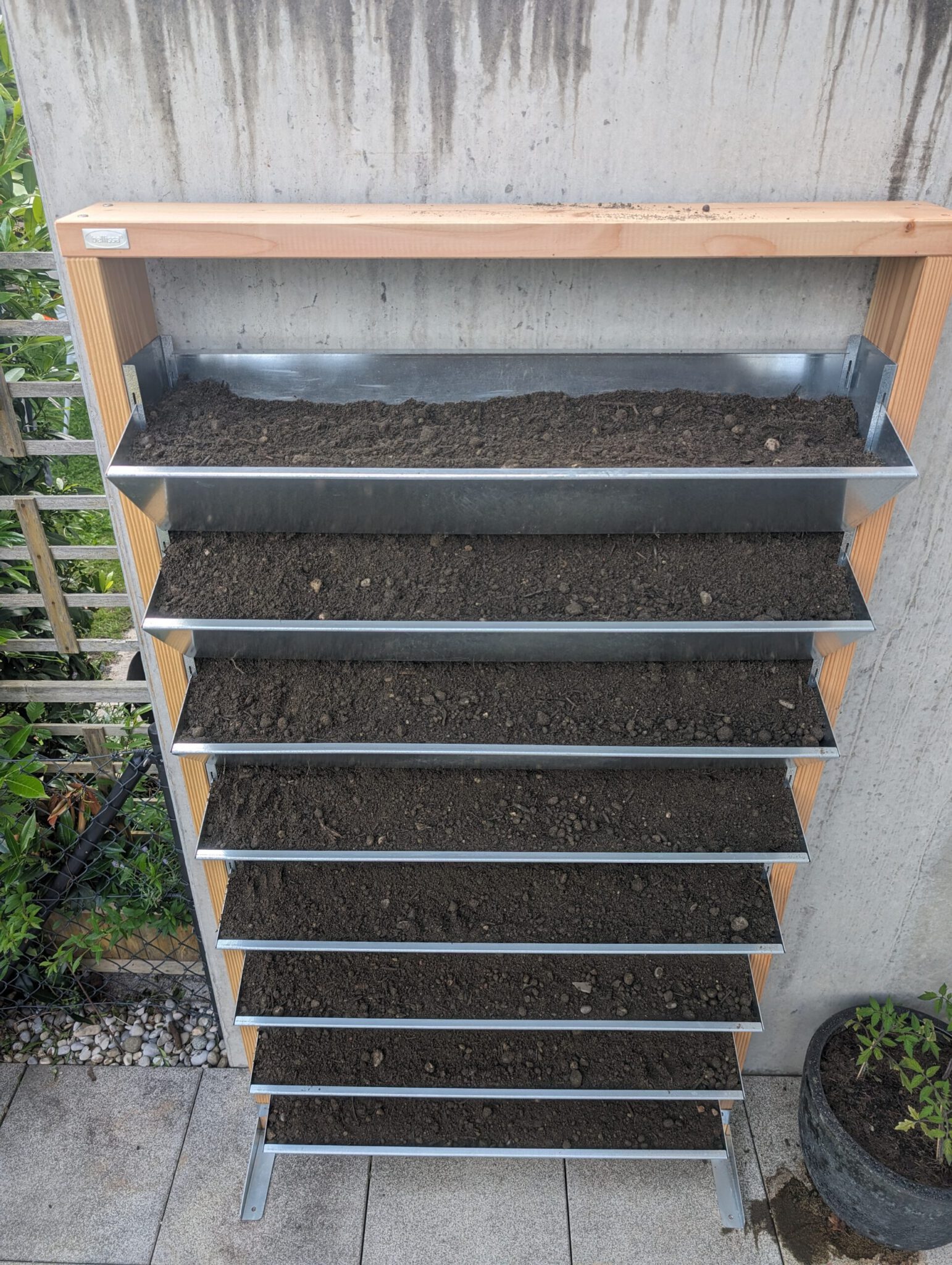 Dieses Jahr habe ich ganz oben Erdbeeren gepflanzt – bin gespannt, ob die dort was werden 🙂