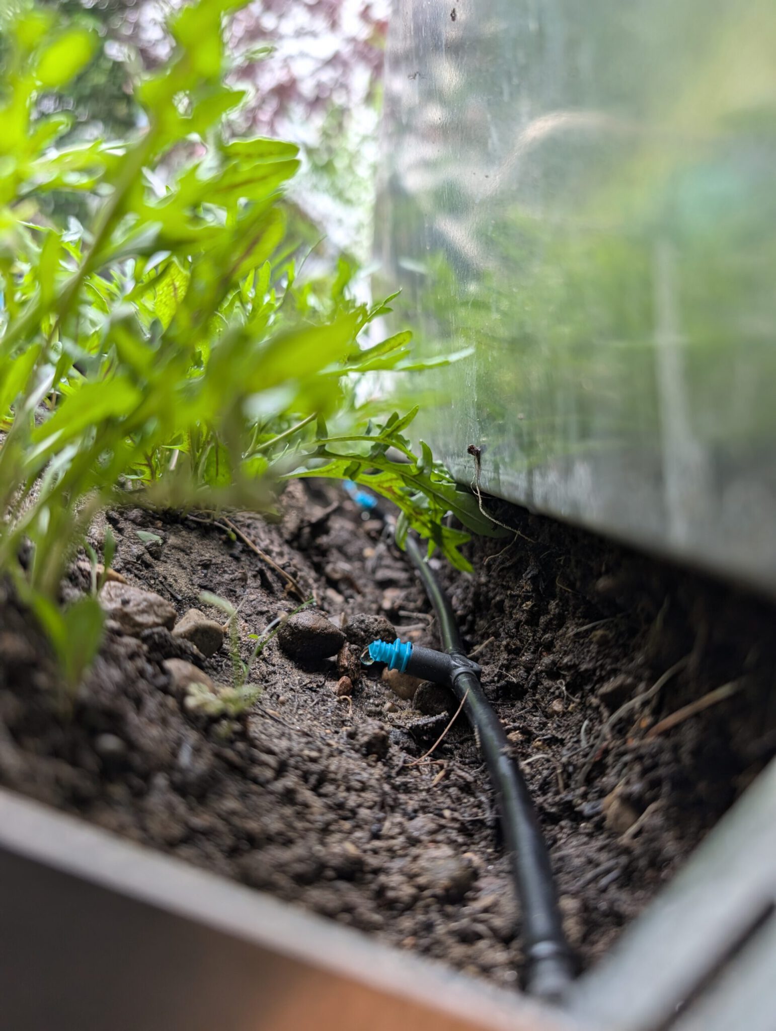 Nachdem das Hochbeet den halben Tag lang voll in der Sonne steht und es vor allem im Sommer schnell trocken wird wenn es mal eine Weile nicht regnet, musste eine Bewässerung her.