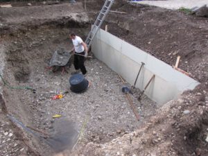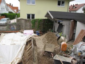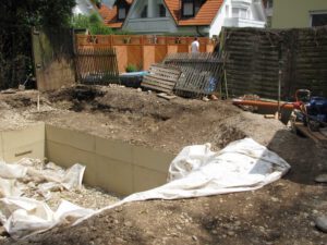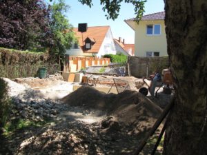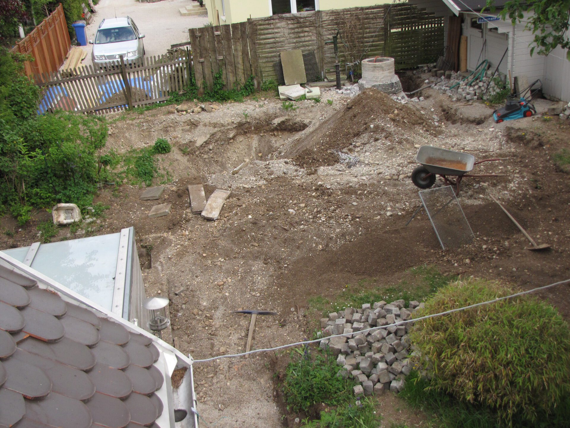 Wir haben nicht genau Buch geführt, aber – abgesehen von den unbezahlten Arbeitsstunden, die erbracht wurden – war insgesamt sicher der Aushub die teuerste Position: der 1. Bagger/LKW reichte nicht und ein 2. musste angefordert werden.