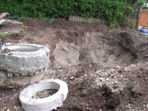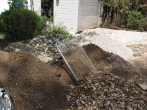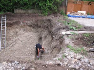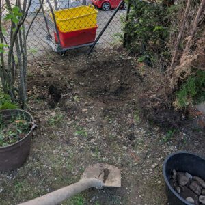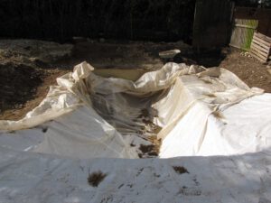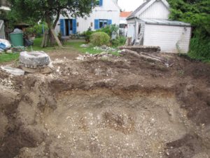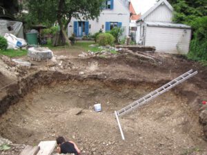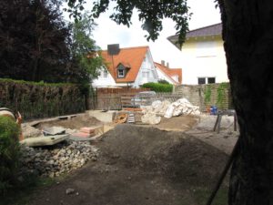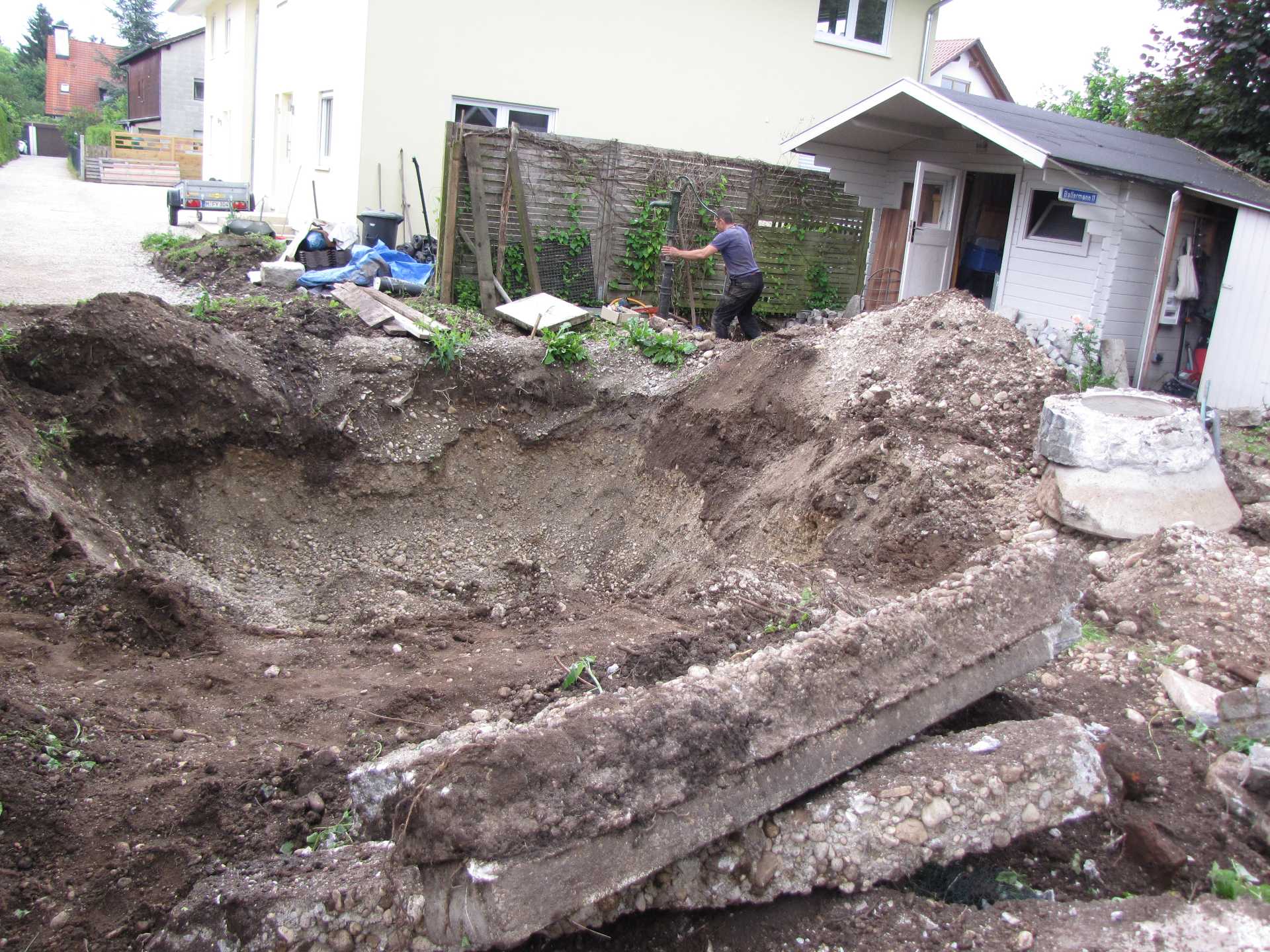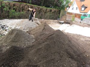 Der erste Bagger der kam war viel zu klein, um den Teich auszuheben. Also wurde ein größerer bestellt, der hatte es dann locker geschafft.