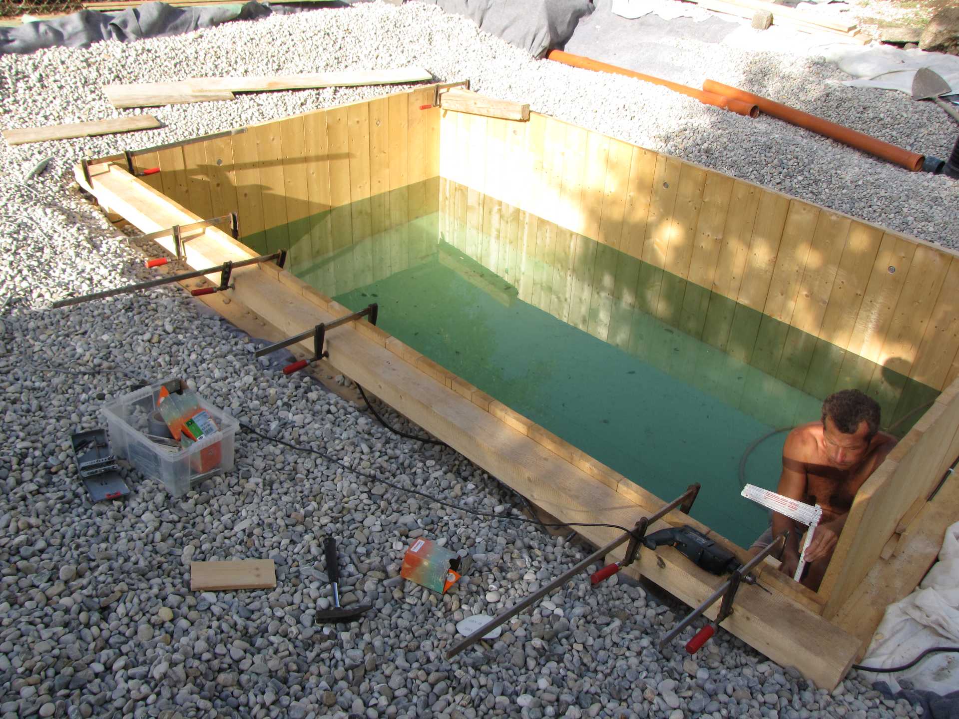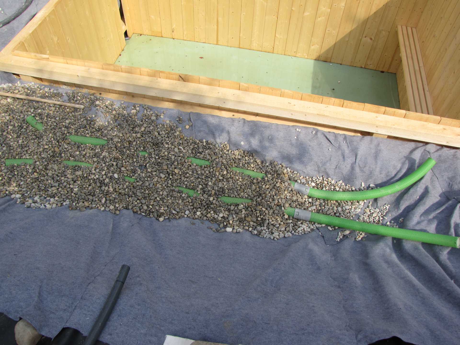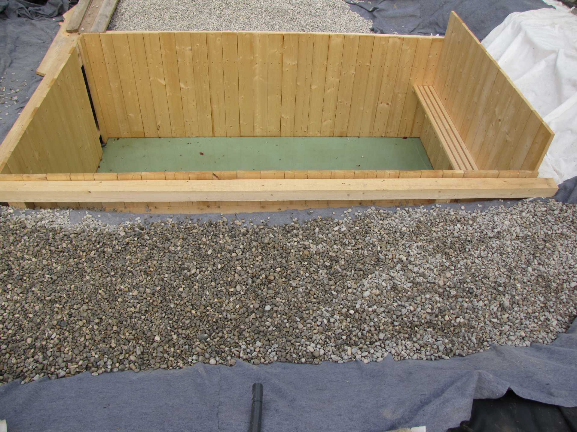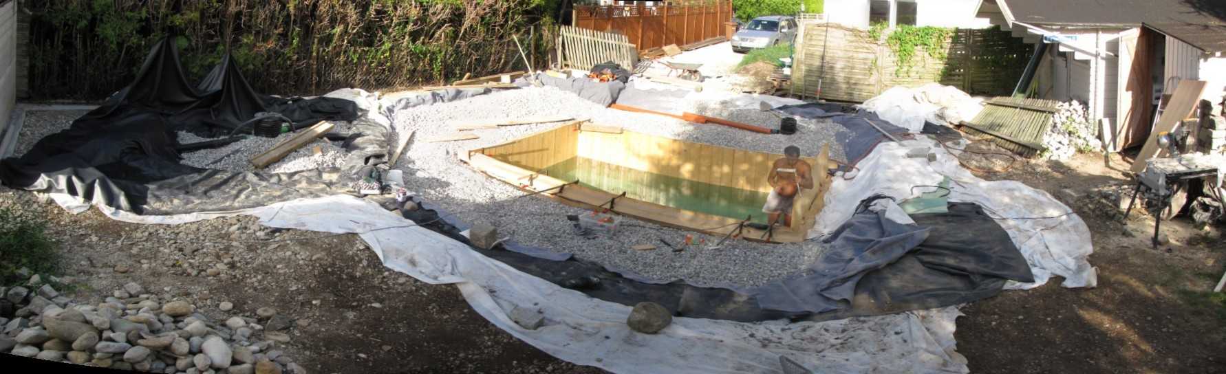 Also alles Wasser wieder ausgelassen, ein paar Tonnen Kies geholt und hinter die Holzkonstruktion gefüllt. Das hat geholfen und der nächste Wassertest wurde erfolgreich bestanden.