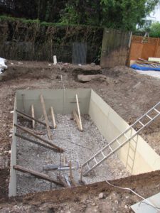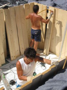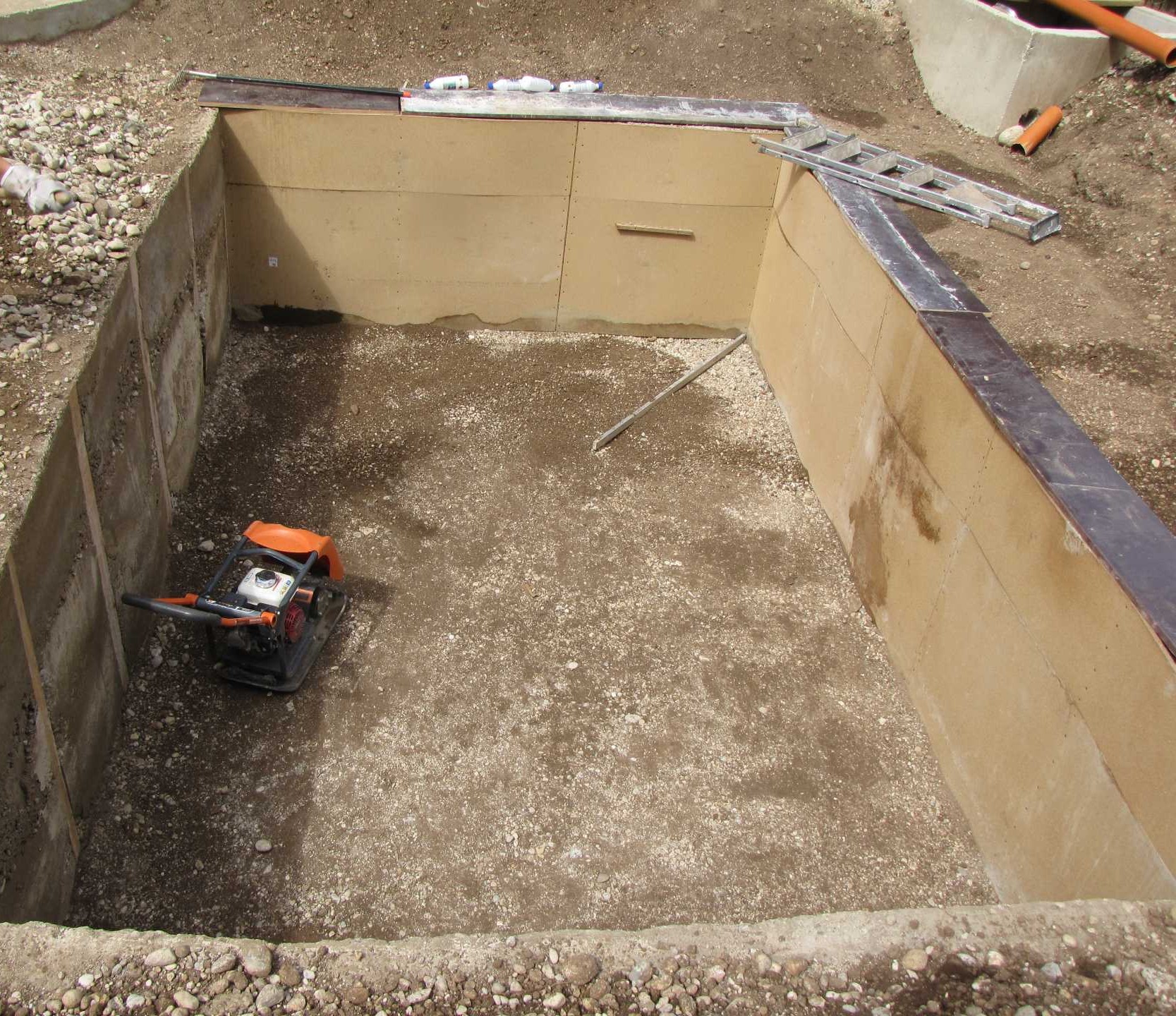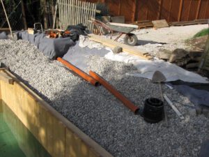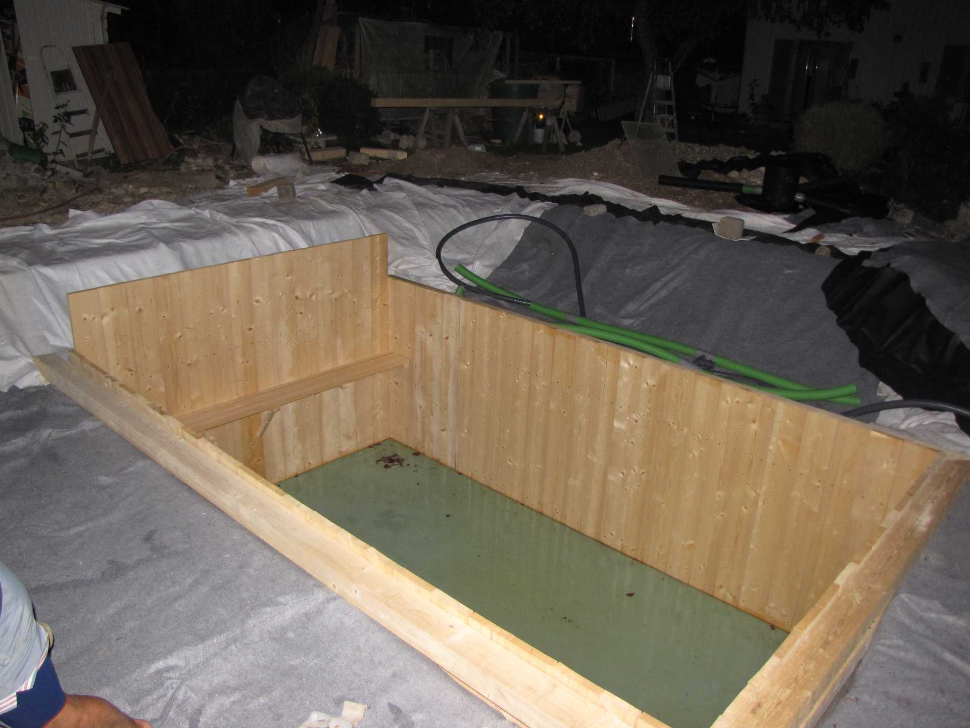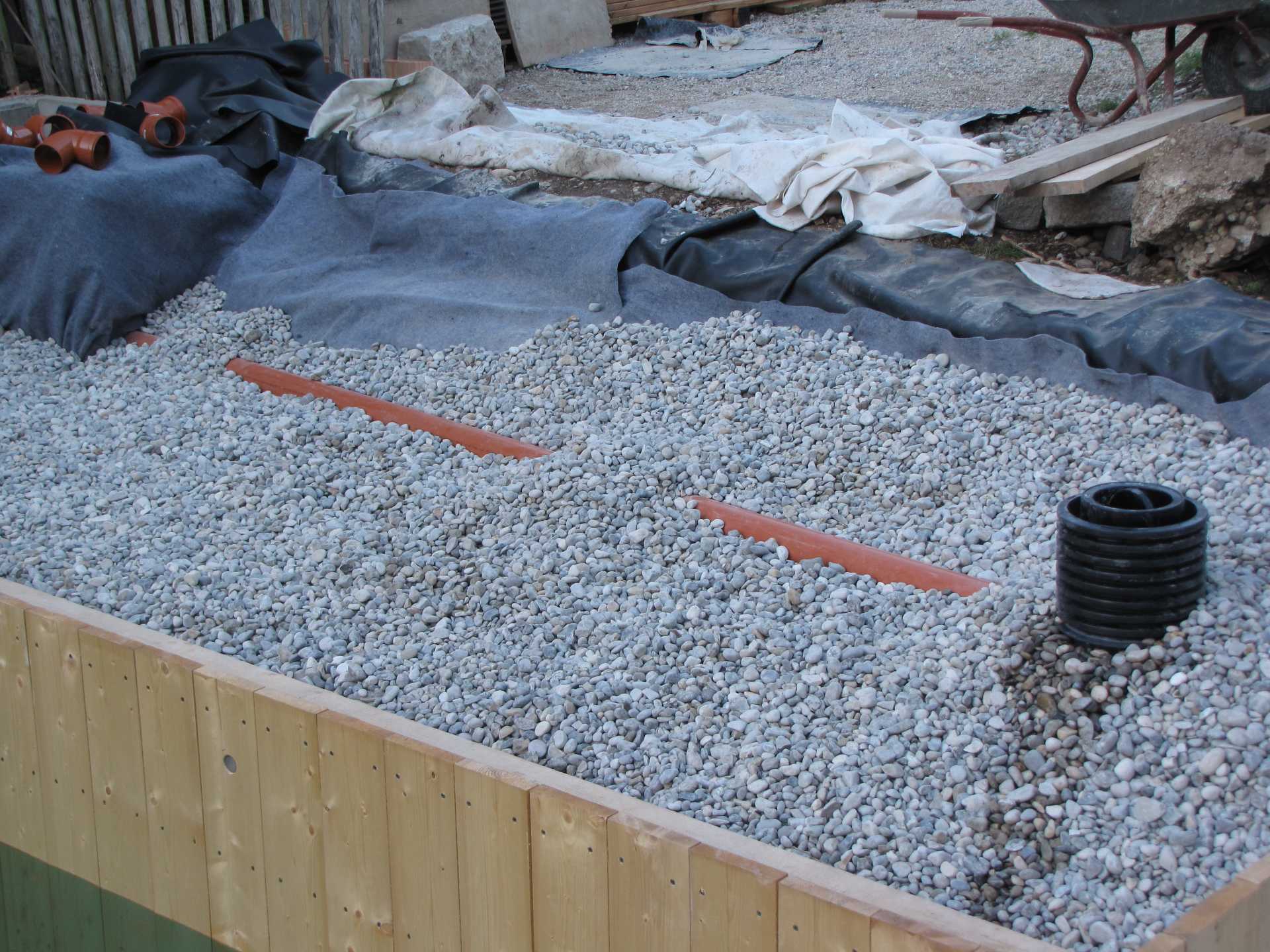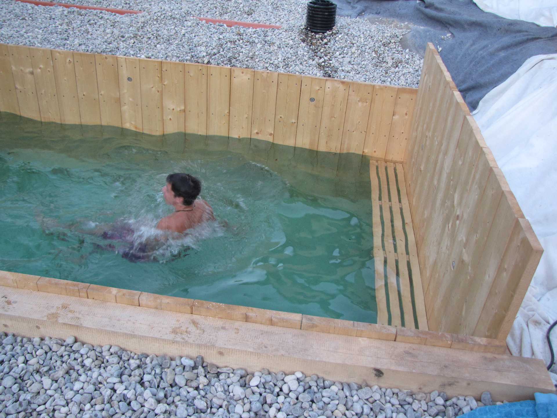 Also alles Wasser wieder ausgelassen, ein paar Tonnen Kies geholt und hinter die Holzkonstruktion gefüllt. Das hat geholfen und der nächste Wassertest wurde erfolgreich bestanden.