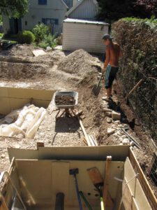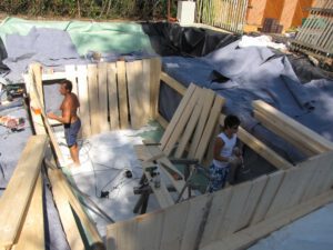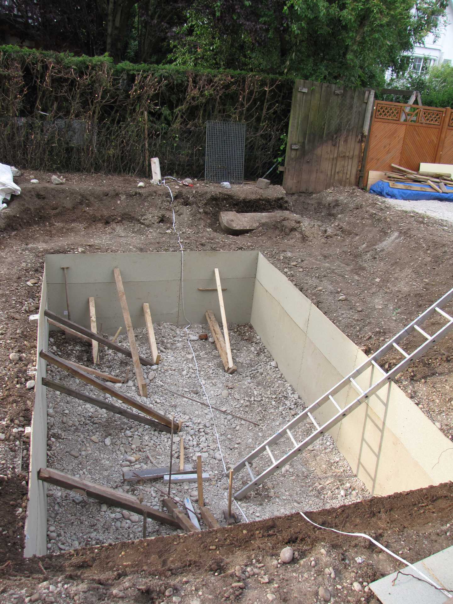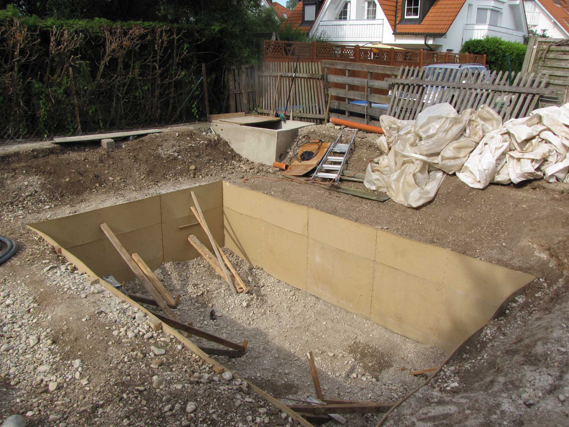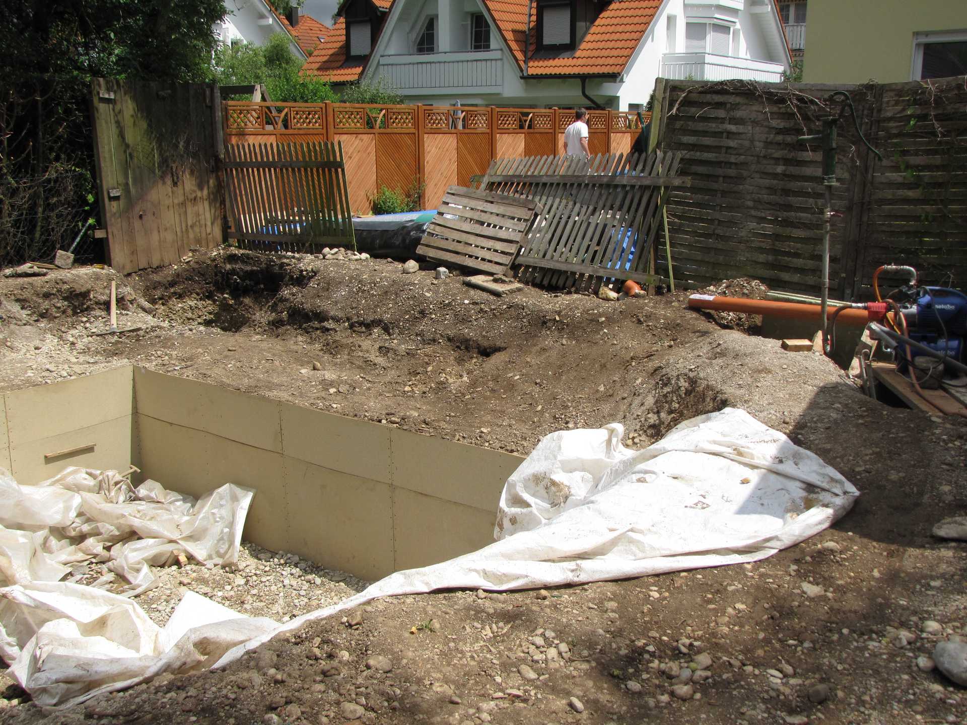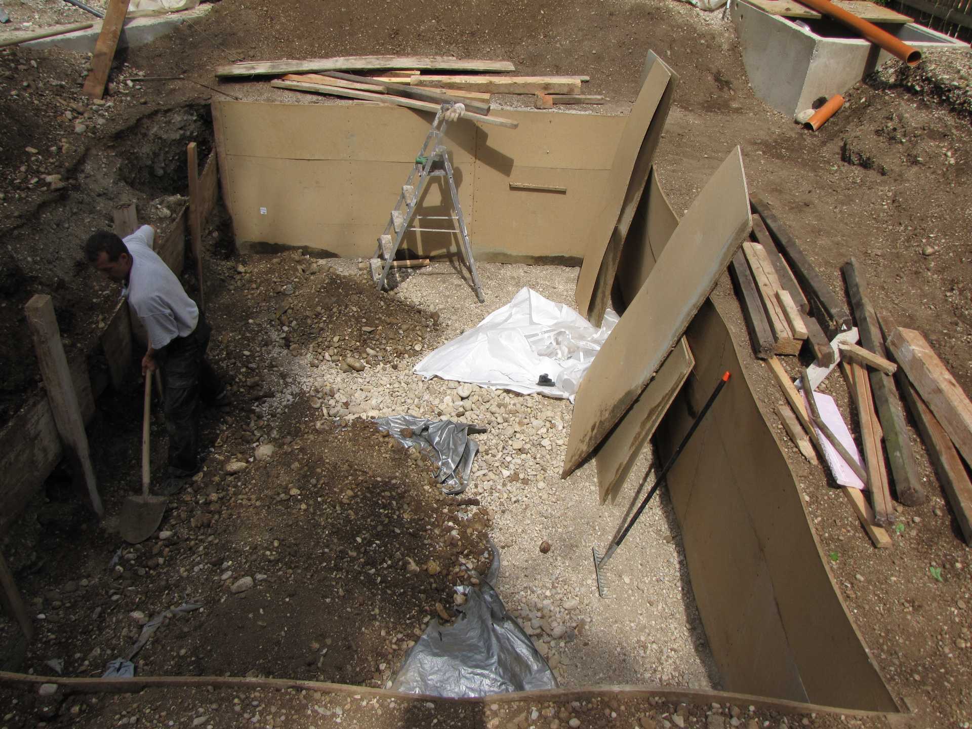 Der Bau hat eine ganze Weile gedauert, weil alles in Handarbeit ging und nur für den groben Aushub ein LKW mit Bagger kam.
