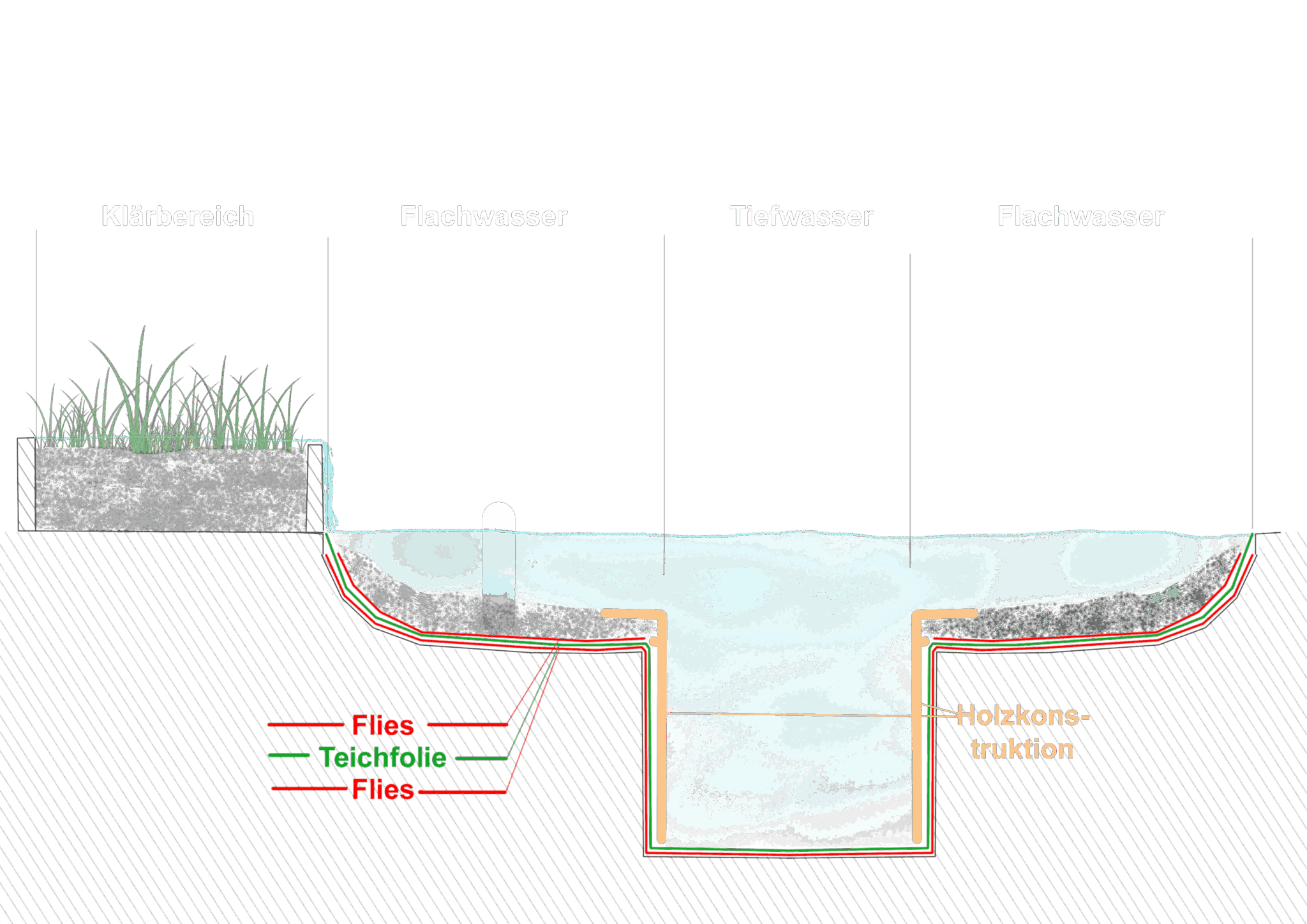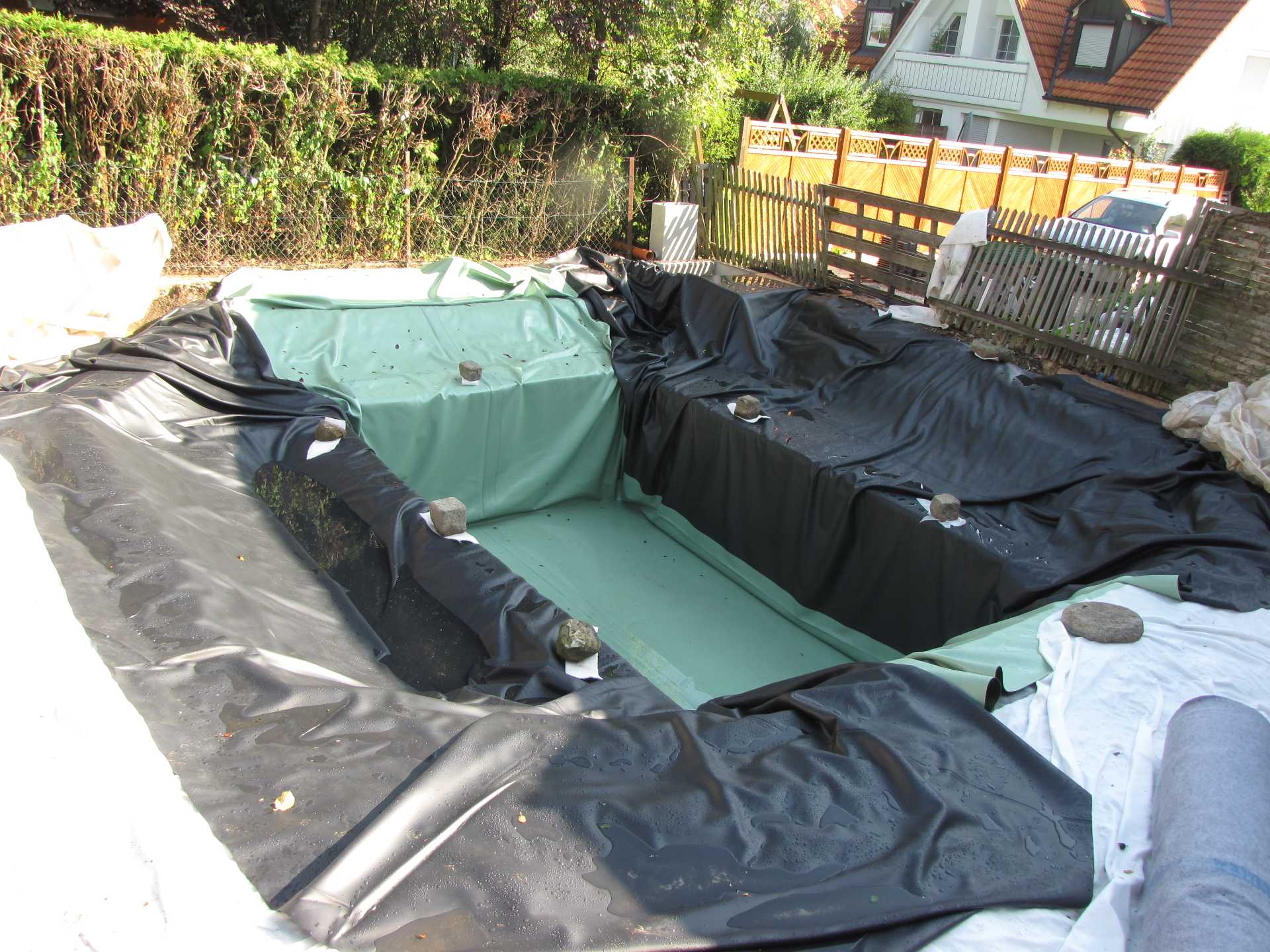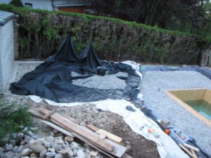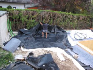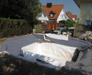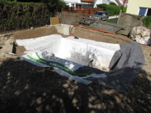 Nachdem wir bis dahin keine Erfahrung im Schwimmteichbau hatten und alles selber machen wollten, haben wir (damals größtenteils Papa) viel im Internet recherchiert und in Foren nachgelesen oder um Hilfe gefragt. Ein paar Dinge wurden dann erst während der Bauphase ergänzt.