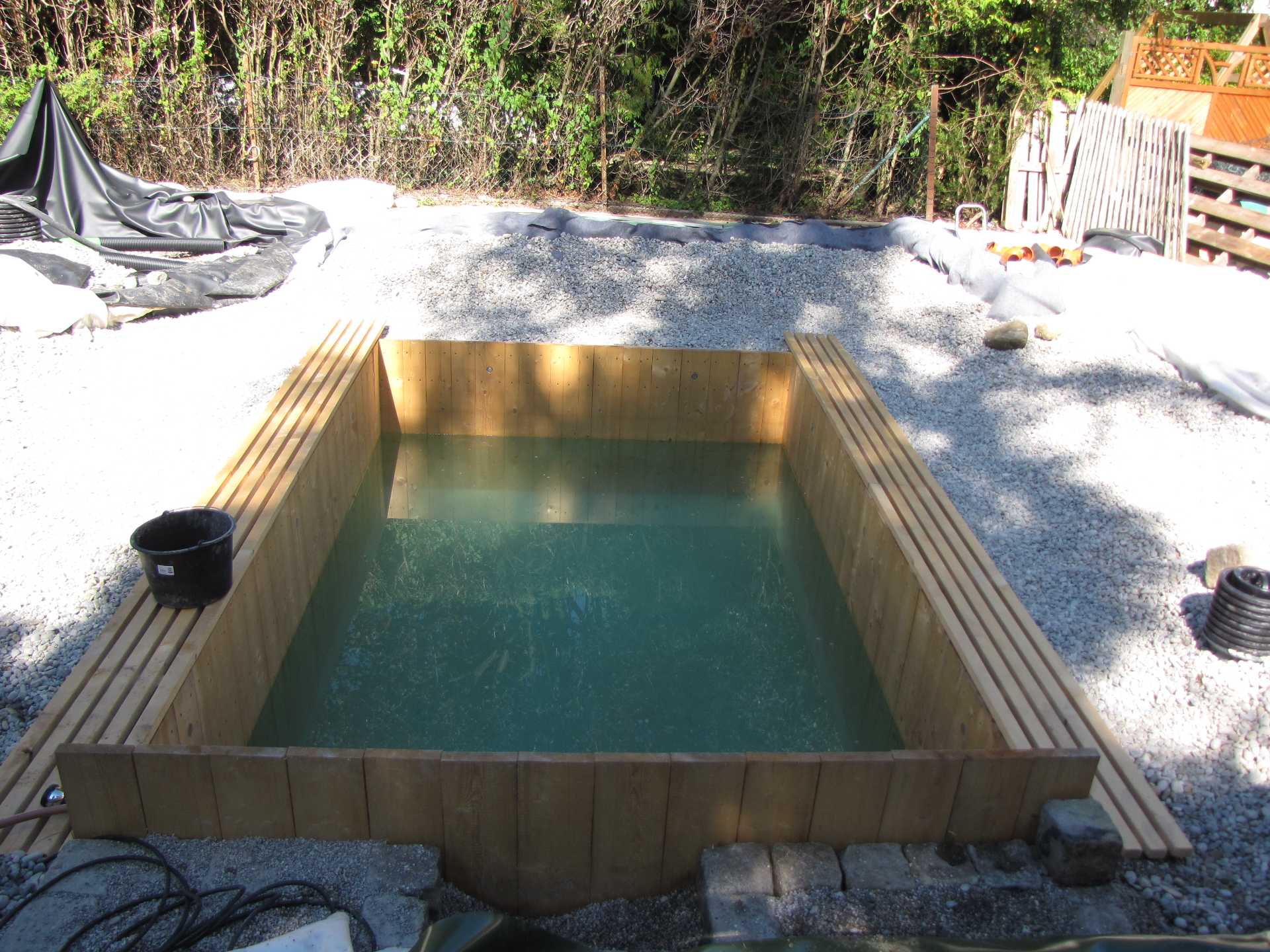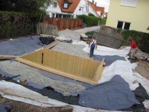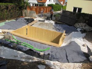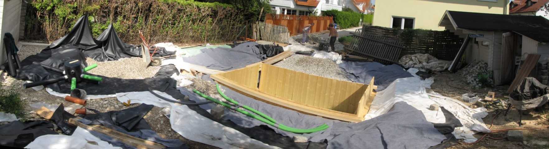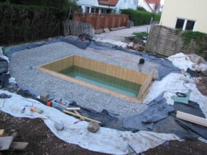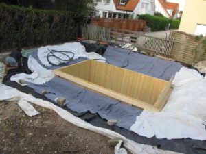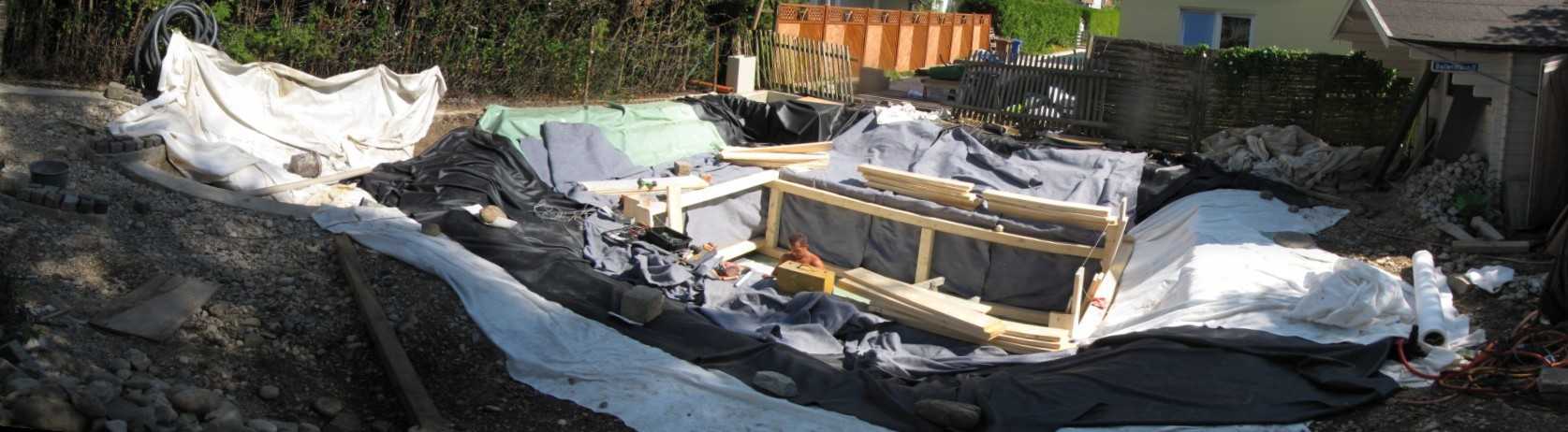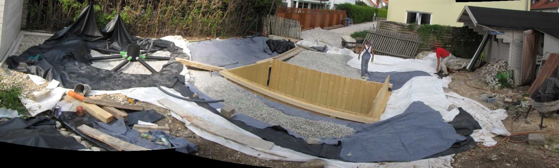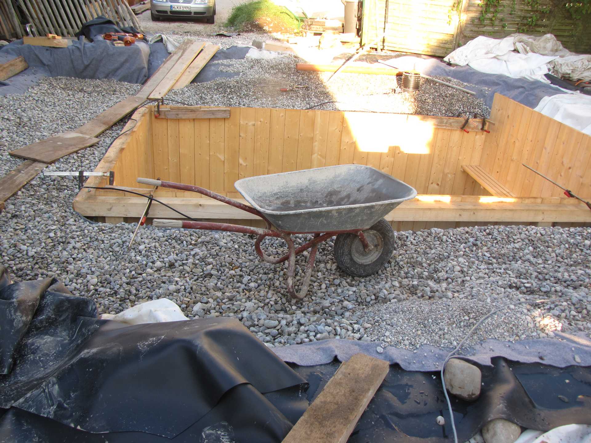 Beim ersten Befüllen des Teiches mit Wasser ist uns der gesamte Holzrahmen aufgeschwommen.