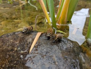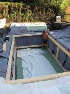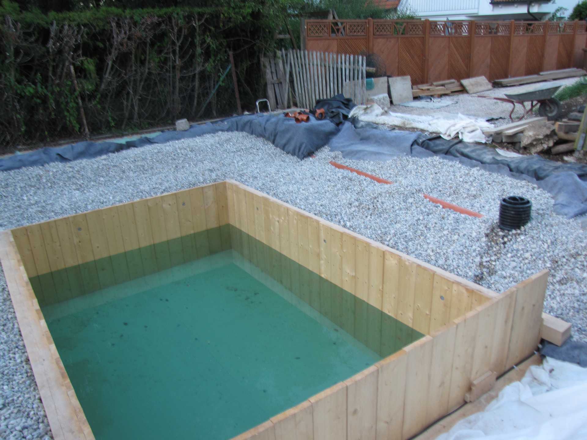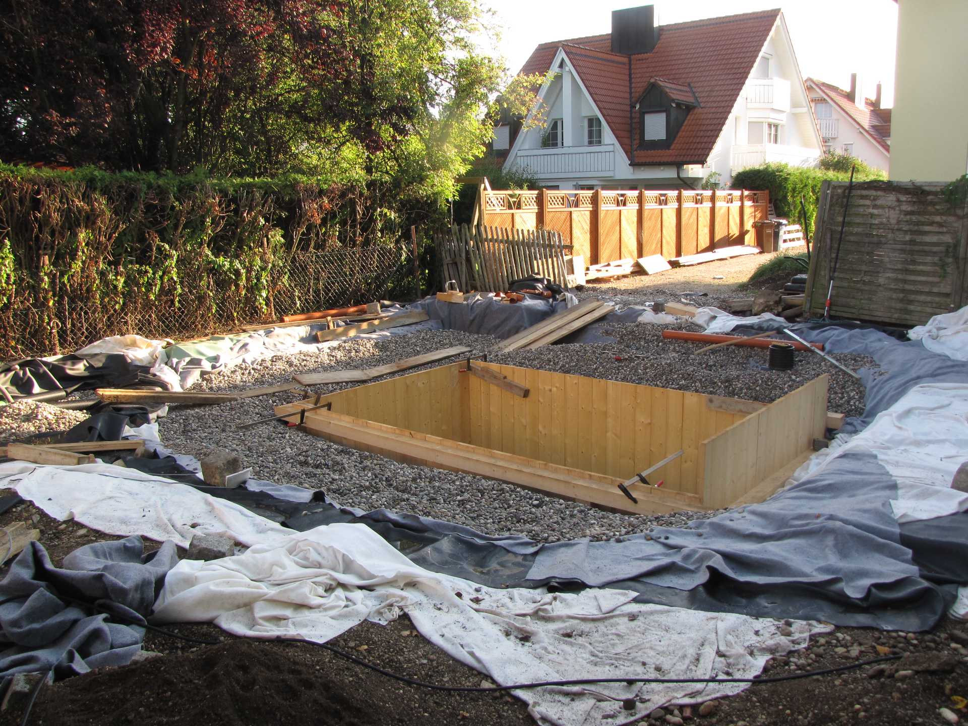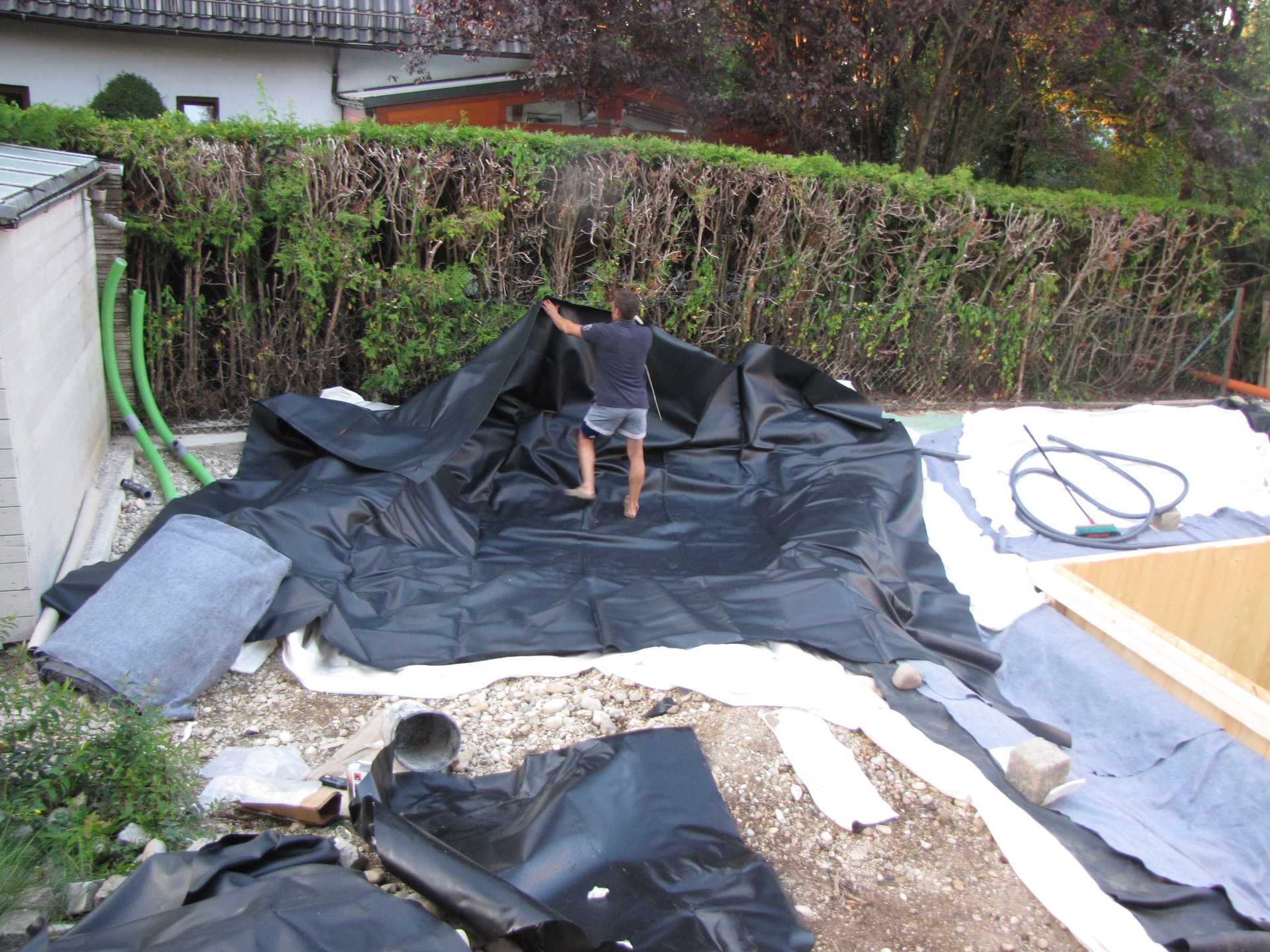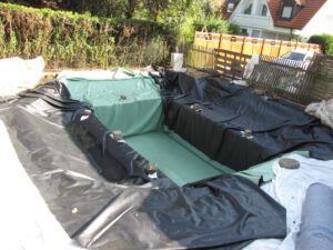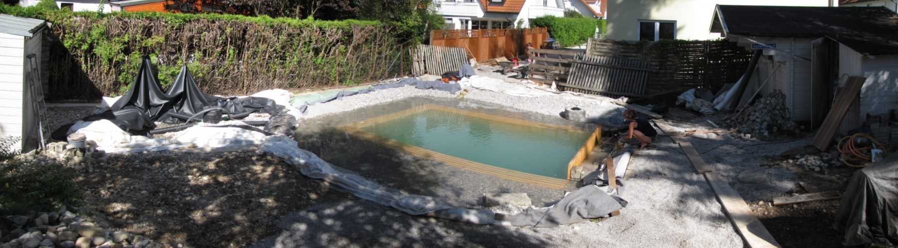 Beim ersten Befüllen des Teiches mit Wasser ist uns der gesamte Holzrahmen aufgeschwommen.