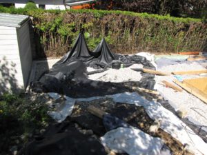 Dafür muss ausgegraben werden, und zwar eine nicht ganz unerhebliche Menge: ca, 15m3 laut Herstellerangaben für ein Trampolin der Größe 5mx3m. Um das Einzuordnen: Mit Bagger und LKW geht das sicher auf 2-3x weg, mit der Schaufel und Schubkarren war ich knapp 5 Tage beschäftigt 😂👌💪