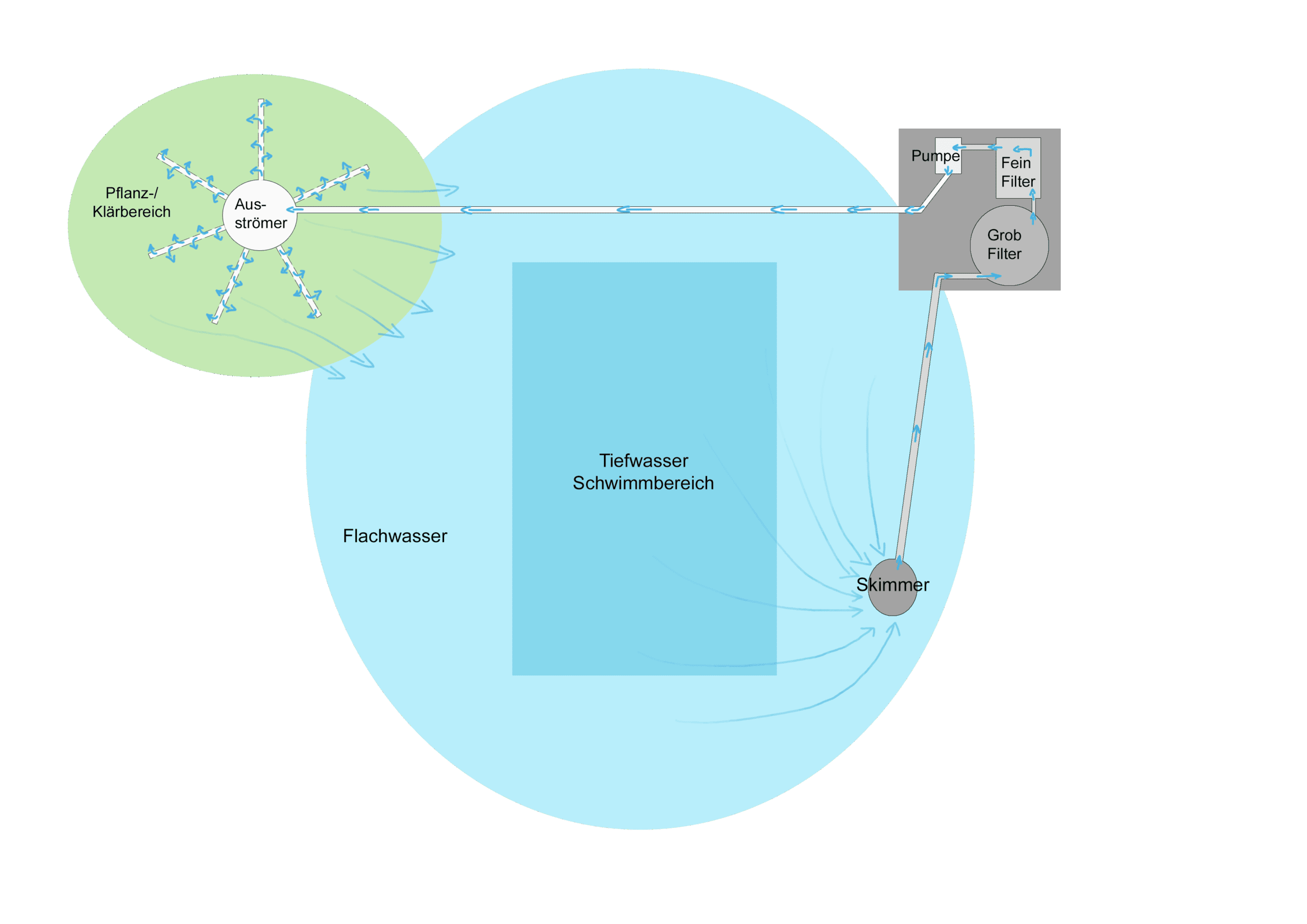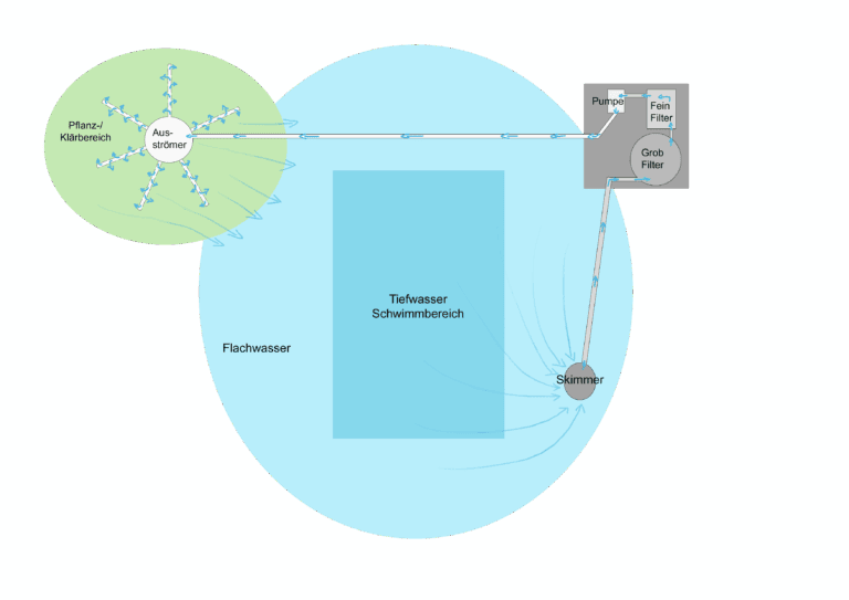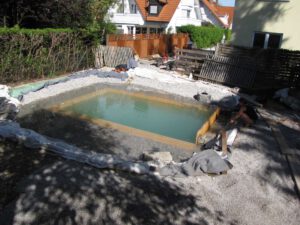 Nachdem die ungefähre Größe sowie das grundsätzliche Design klar waren, ging es an die Planung. Sprich wie funktioniert ein Schwimmteich, wie ist ein Schwimmteich aufgebaut, was benötigt man alles dafür?